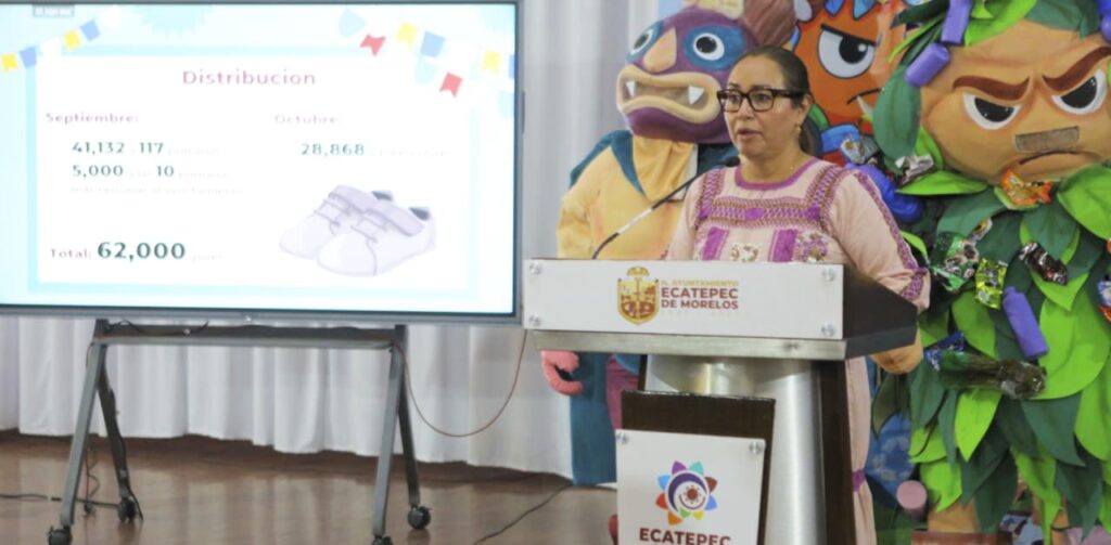 Durante los meses de septiembre y octubre próximos, el gobierno de Ecatepec entregará zapatos escolares a las niñas y niños que cursan preescolar y primaria, mencionó la alcaldesa.