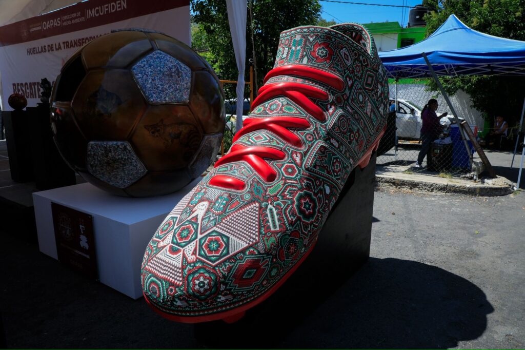 El material recolectado servirá para crear una escultura gigante de “Chiquino”, de tres metros, que será elaborada por el artista plástico Cesar Menchaca, creador del personaje, los balones gigantes y zapatos de fútbol, decorados con arte huichol, los cuales fueron elaborados con materiales reciclados.