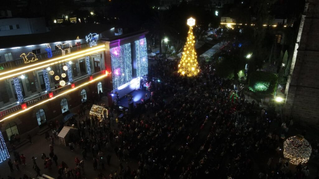 En Tlalnepantla, Estado de México, la tarde noche de este martes, cientos de familias se dieron cita para presenciar el encendido del árbol de Navidad ubicado en la Explanada del Ayuntamiento, que estará disponible durante esta temporada decembrina.