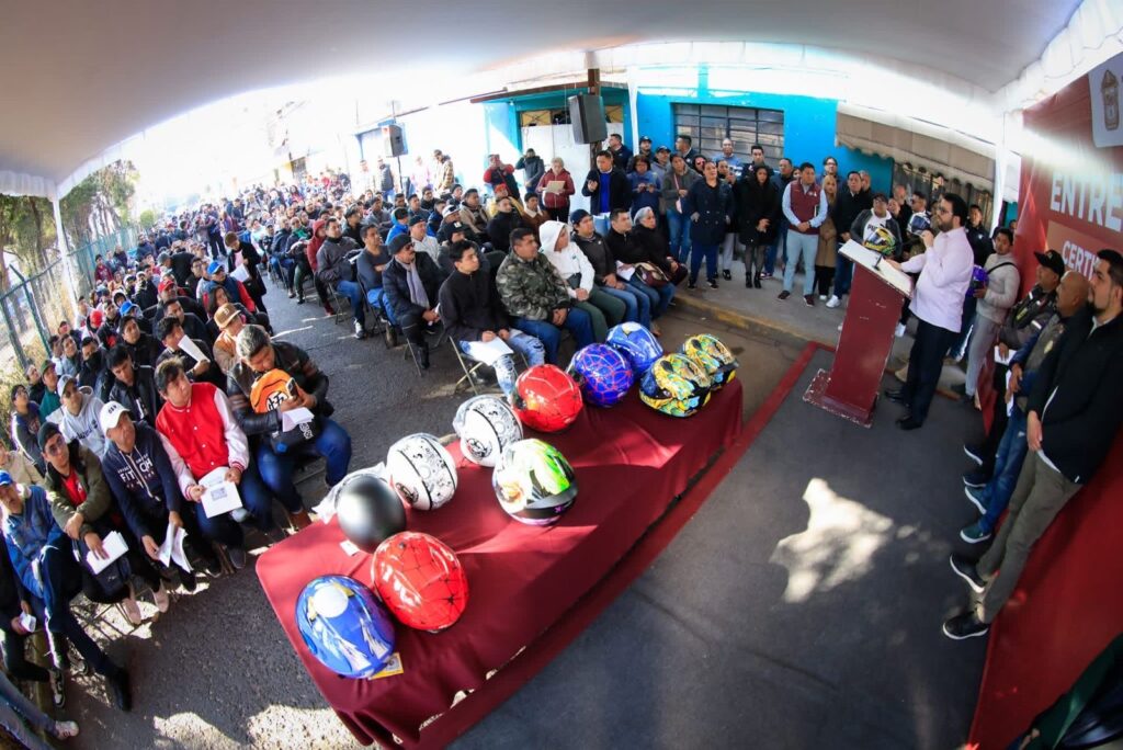 Luego de la Mesa de Paz en El Conde, Montoya Marquez, entregó 150 cascos certificados a motociclistas de diferentes comunidades del municipio con el objetivo de preservar la integridad física de la comunidad de motociclistas que circulan diariamente por las calles y avenidas de Naucalpan.