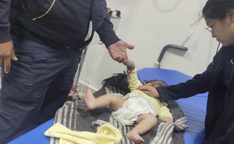 En Ecatepec, Estado de México, Personal de Protección Civil de rescato a un bebé abandonado en la colonia Santo Tomás
